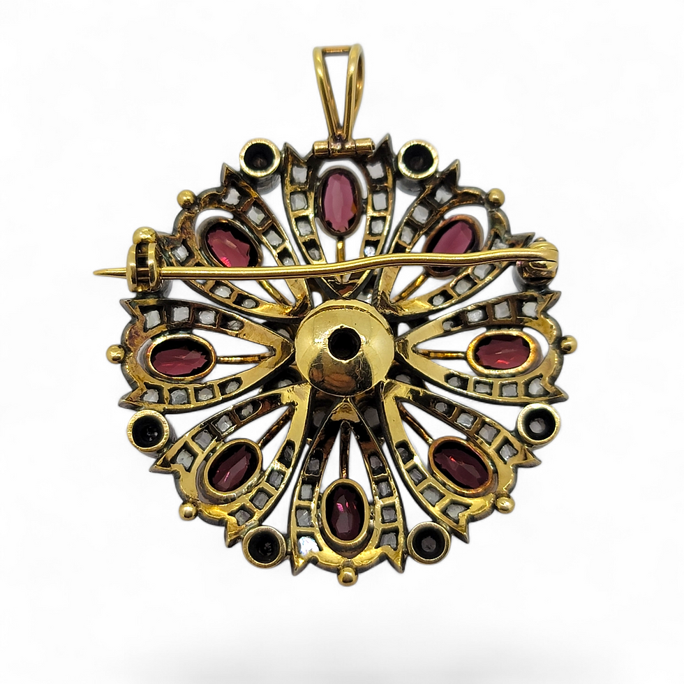 Ruby & Diamond Jardiniere brooch est D1.50 cts 23gms 18kt